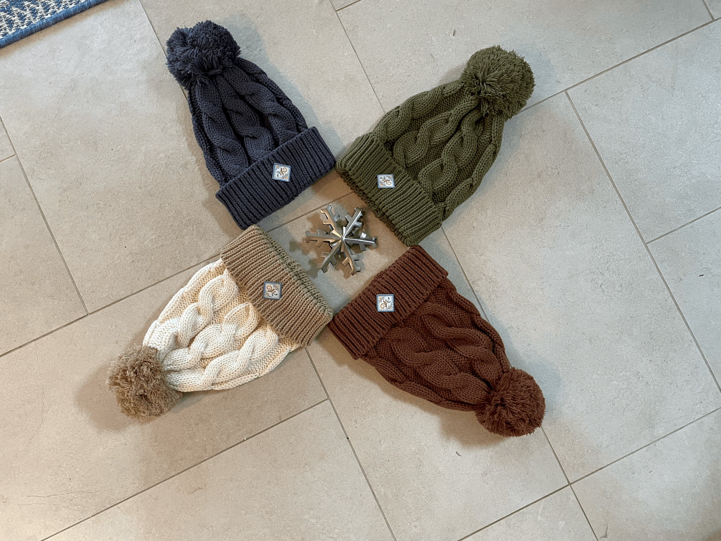 Store › Pom Pom Beanie Image 1 of 2 Image 2 of 2 Pom Pom Beanie $20.00 Color: Umber Green Cream Steel Blue Quantity: Purchase Added!